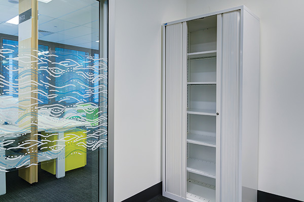 Storage units in the Woodside fit-out are truly unique designs. A design feature of the entire Woodside project is curved surfaces and as a result, every storage unit incorporates curves. This presented significant manufacturing challenges for the Bosco project team. The successful outcome of the team’s collaborative efforts was production of significant quantities of physically large curved units within a tight schedule, to a very high quality standard.